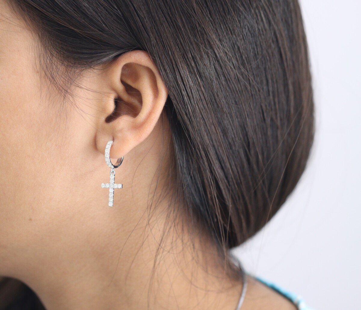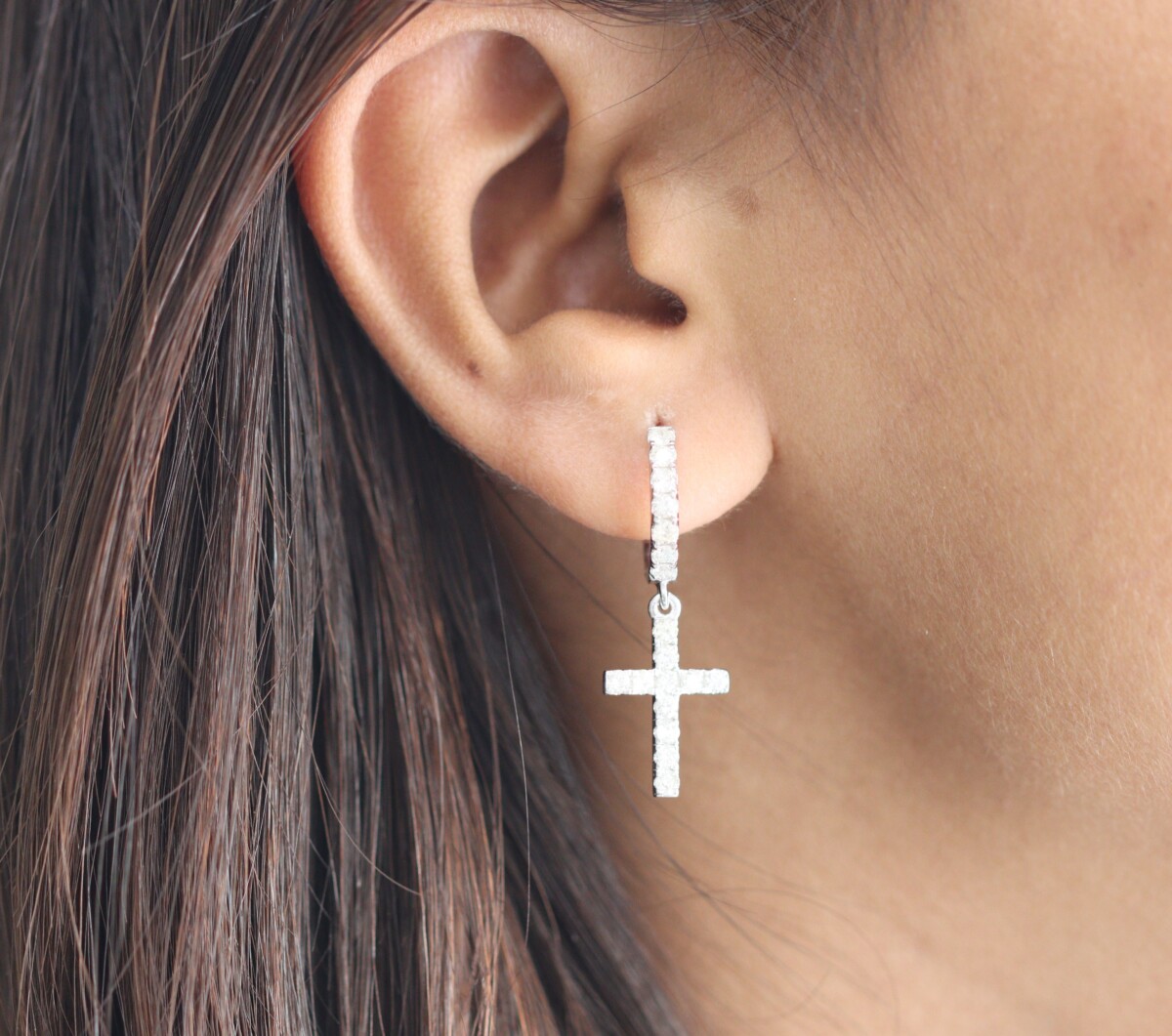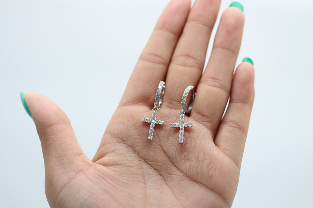 0.80 ct Lab Grown Diamond Drop Dangle Cross Earrings - Image 2