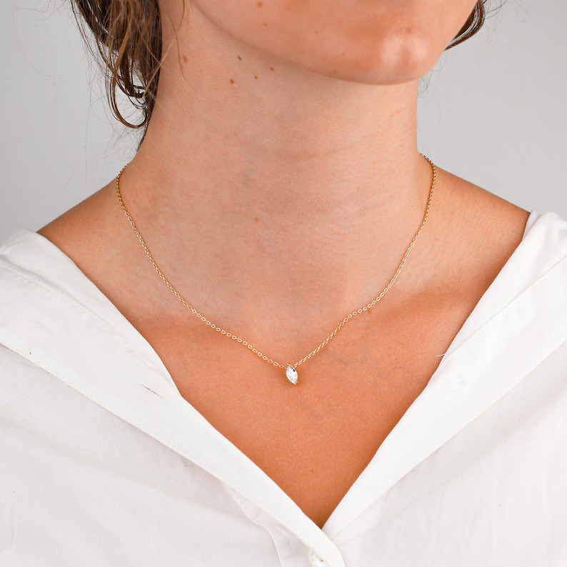 1 CT Marquise Cut Lab Grown Diamond Solitaire Pendant with Chain