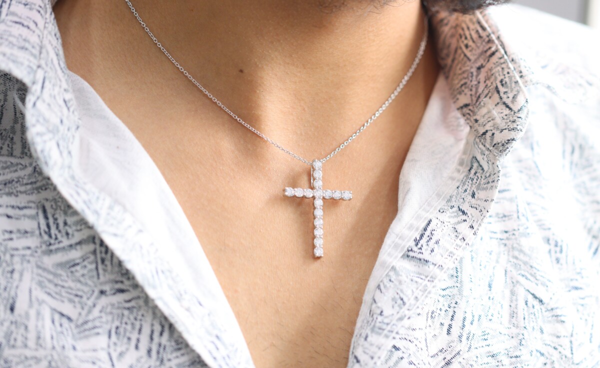 2.50 ct Lab Grown Diamond Unisex Cross Pendant with Chain - Image 5