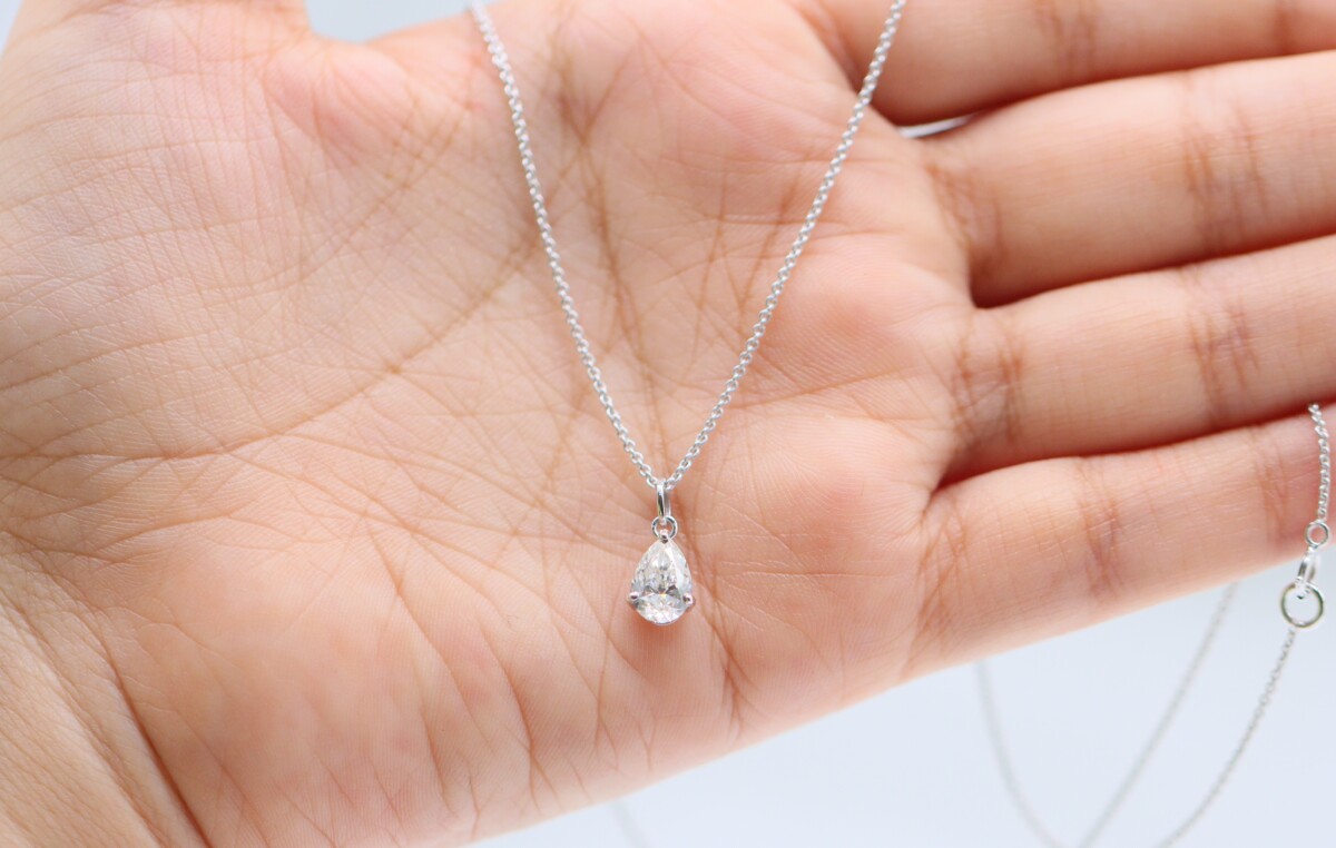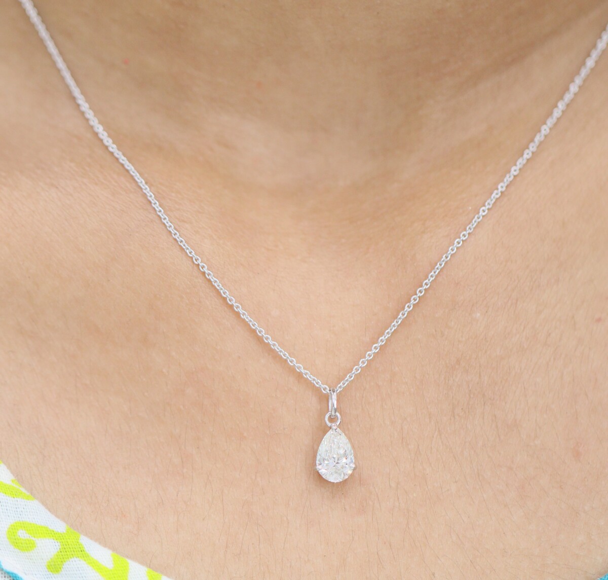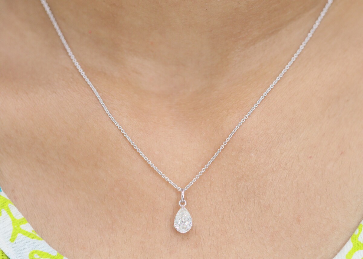 2 ct Pear Cut Lab Grown Diamond Solitaire Pendant with Chain